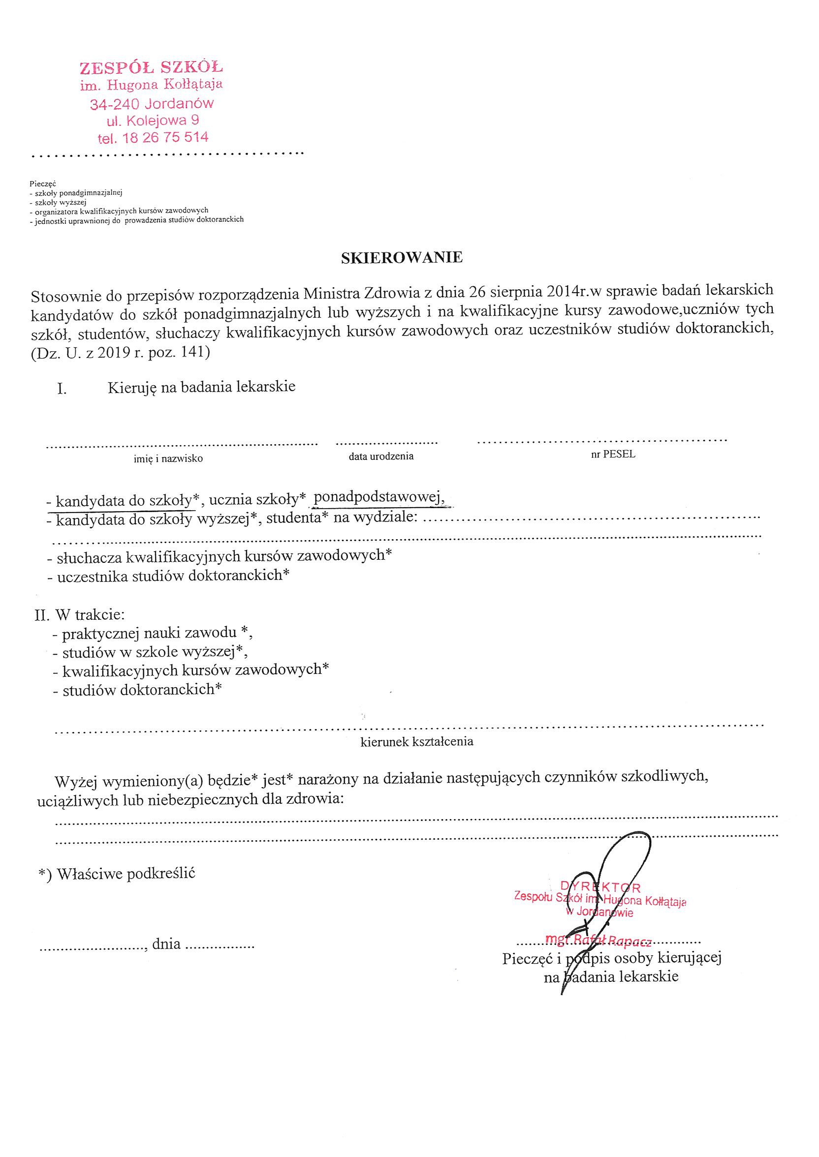 Dostarcz do sekretariatu lub wyślij na adres rekrutacjazsk@op.pl