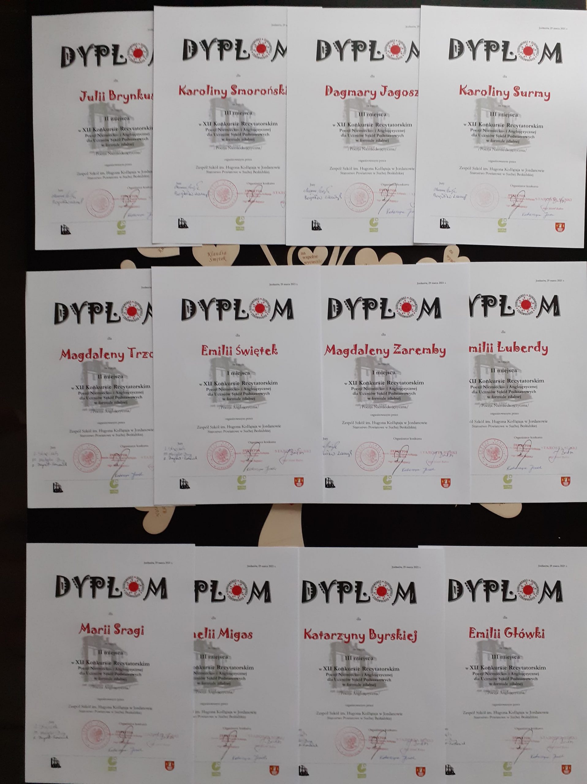 W dniu 22 marca 2019r. w Zespole Szkół im. H. Kołłątaja w Jordanowie odbył się X Konkurs Recytatorski Poezji Niemiecko- i Anglojęzycznej dla Uczniów Szkół Gimnazjalnych i Podstawowych. Do konkursu przystąpiło 66 uczestników (30- j. niemiecki, 36 – j. angielski) z 16 szkół: z Toporzyska, Naprawy, Grzechyni, Białki, Makowa Podhalańskiego, Chabówki, Łętowni, Krzczonowa, Żarnówki, Rdzawki, Skawy, Skomielnej Białej, Rokicin Podhalańskich, Sidziny i Spytkowic.