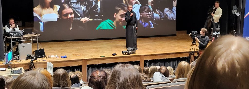 Podczas warsztatów omówiono wpływ mediów na życie i umysł, a także zagrożenia związane z manipulacją informacjami w internecie. Redaktor Piotr Grabowski mówił o potędze obrazu i technologii, takich jak green screen, oraz przedstawił statystyki dotyczące wpływu mediów na percepcję.