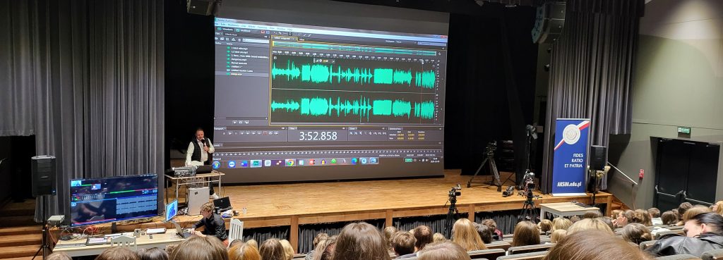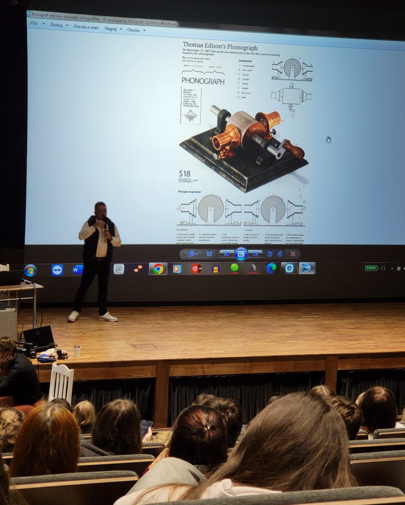 Poruszono także temat dźwięku, od historii rejestracji po współczesne technologie. Redaktor Paweł Bielicki omówił częstotliwości dźwięku, metody rejestracji oraz manipulacje, takie jak edycja dźwięku i Autotune, podkreślając wpływ technologii na odbiór dźwięków.
