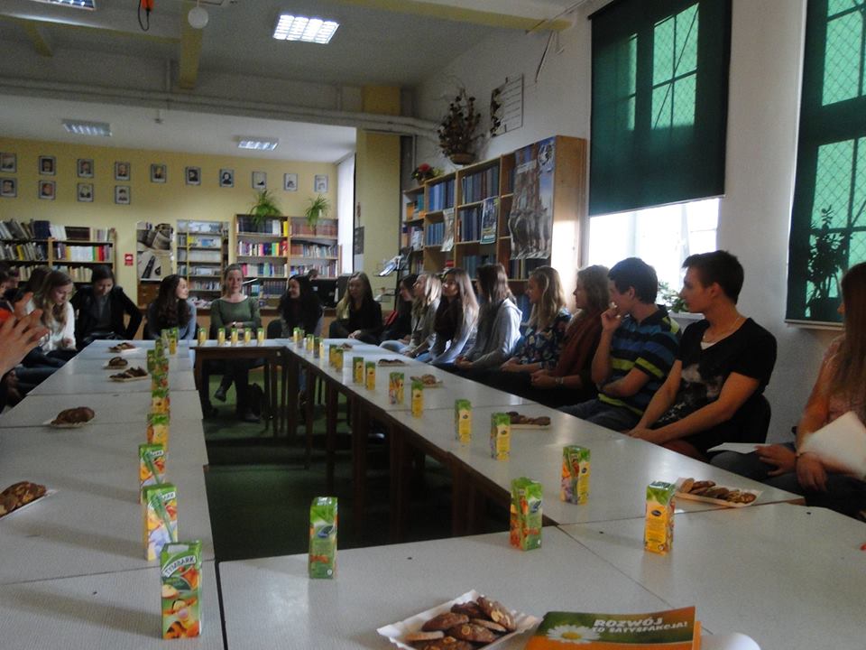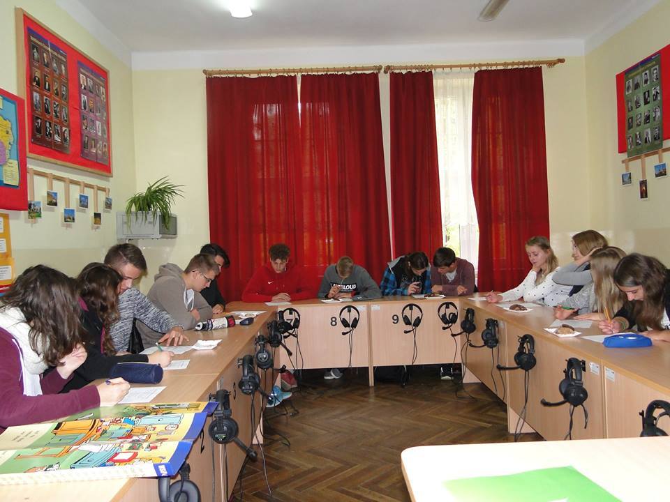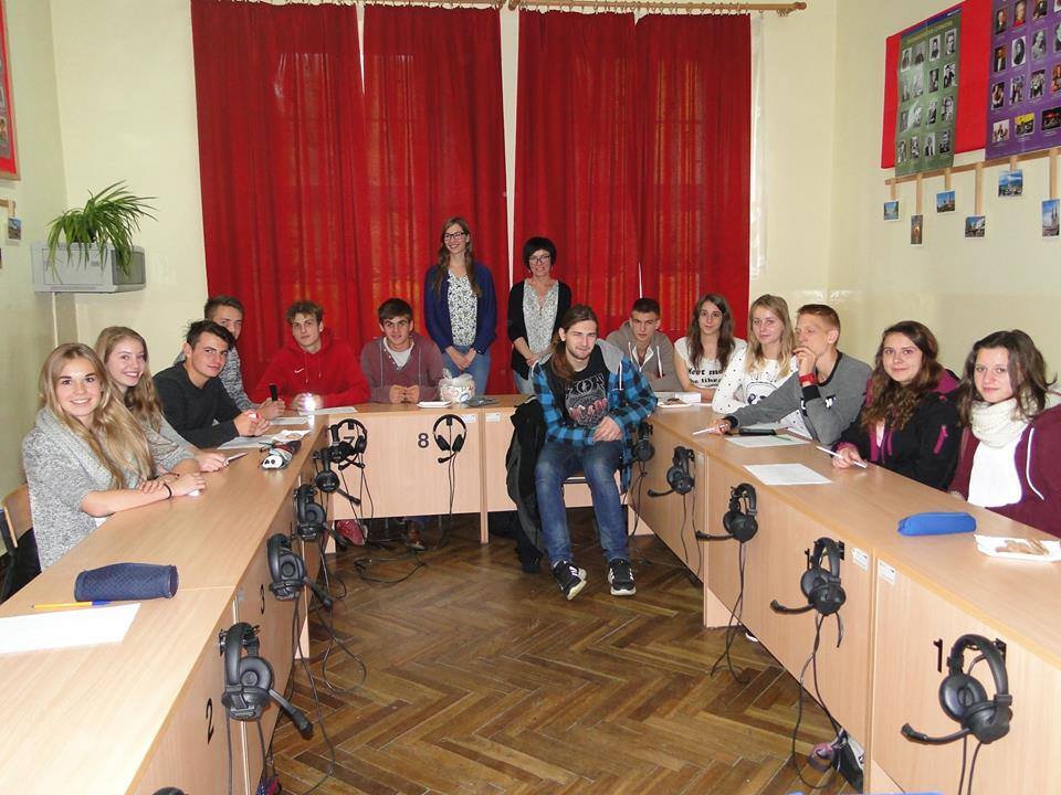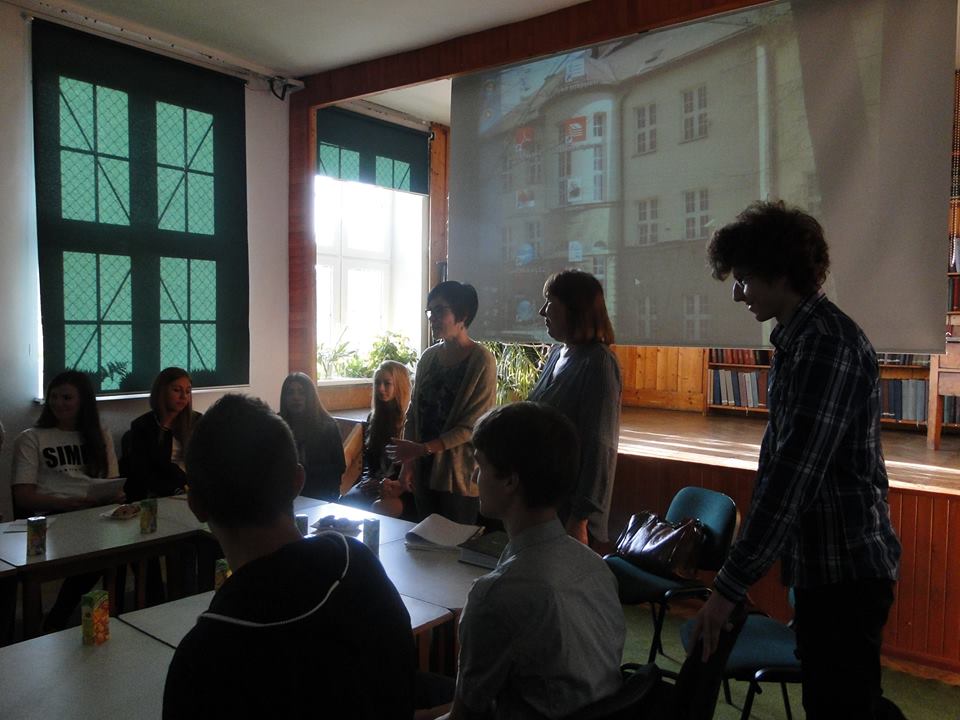 wicedyrektor Krystynę Kudzię. W rolę tłumacza wcielił się ucz. klasy trzeciej Bartosz Budziak. W warsztatach uczestniczyli również uczniowie klas trzecich, którzy przygotowują się do matury z języka niemieckiego. W czasie dwugodzinnego spotkania – uczniowie zarówno polscy jak i niemieccy – mieli możliwość wypowiedzenia się na tematy, dotyczące młodych ludzi oraz w tandemie pracowali nad znajomością języka polskiego i niemieckiego. Następnym punktem programu było uczestnictwo w zajęciach edukacyjnych oraz zwiedzanie budynku szkoły oraz hali sportowej.