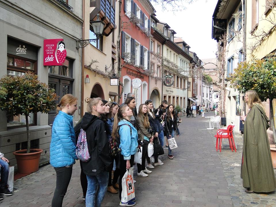 Trzeciego dnia pobytu w Niemczech nadszedł czas na zwiedzenie Fryburga, poprzedzone spacerem nad jeziorem Titisee. Charyzmatyczny przewodnik, odgrywający rolę Bertholda Schwarza, legendarnego alchemika, który wynalazł proch strzelniczy, zapoznał nas z ciekawą historią Fryburga i jego najważniejszymi zabytkami. Po zwiedzaniu udaliśmy się do kręgielni, gdzie świetnie bawiliśmy się walcząc zaciekle o wygraną i tytuł najlepszego gracza, który przypadł polskiej uczestniczce wymiany.