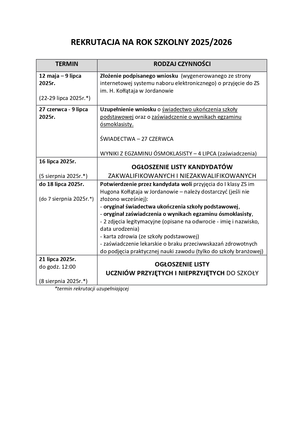 Rekrutacja rozpocznie się 12 maja 2025 r. i będzie prowadzona za pomocą elektronicznego systemu rekrutacji.