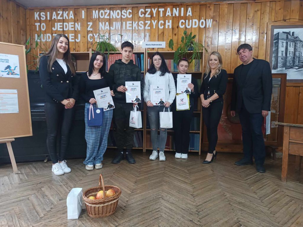 Dnia 11.04.2024r. z okazji Światowego Dnia Zdrowia, który obchodzimy 7 kwietnia uczniowie Naszej Szkoły wzięli udział w konkursie „Zdrowy Hugon”, podczas którego musieli napisać test o zdrowiu, wykazać się wiedzą na temat zdrowego odżywiania i zdrowego trybu życia oraz wykonać plakat promujący zdrowe nawyki. W ramach akcji wszyscy uczniowie otrzymali jabłko oraz gadżety. Bardzo dziękujemy wszystkim uczestnikom za udział w konkursie. Gratulujemy zwycięzcom i zapraszamy do udziału w kolejnych edycjach. Szczególne podziękowania przesyłamy dla —–> Siłowni Fitness Paradise wJordanowie. FHU Gamma w Jordanowie za ufundowanie cennych nagród dla naszych zwycięzców. Pedagodzy A.M. I.S.