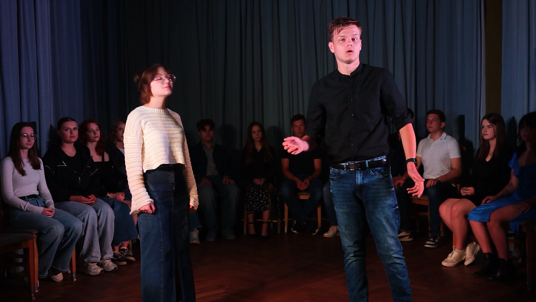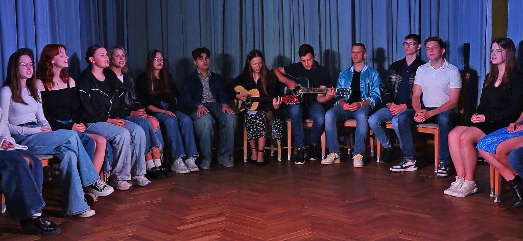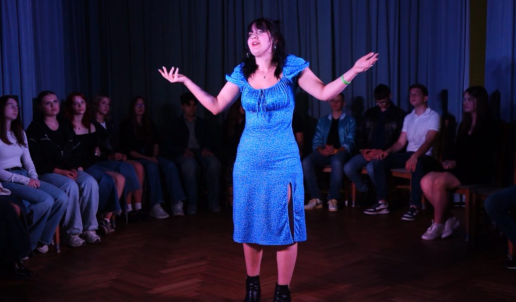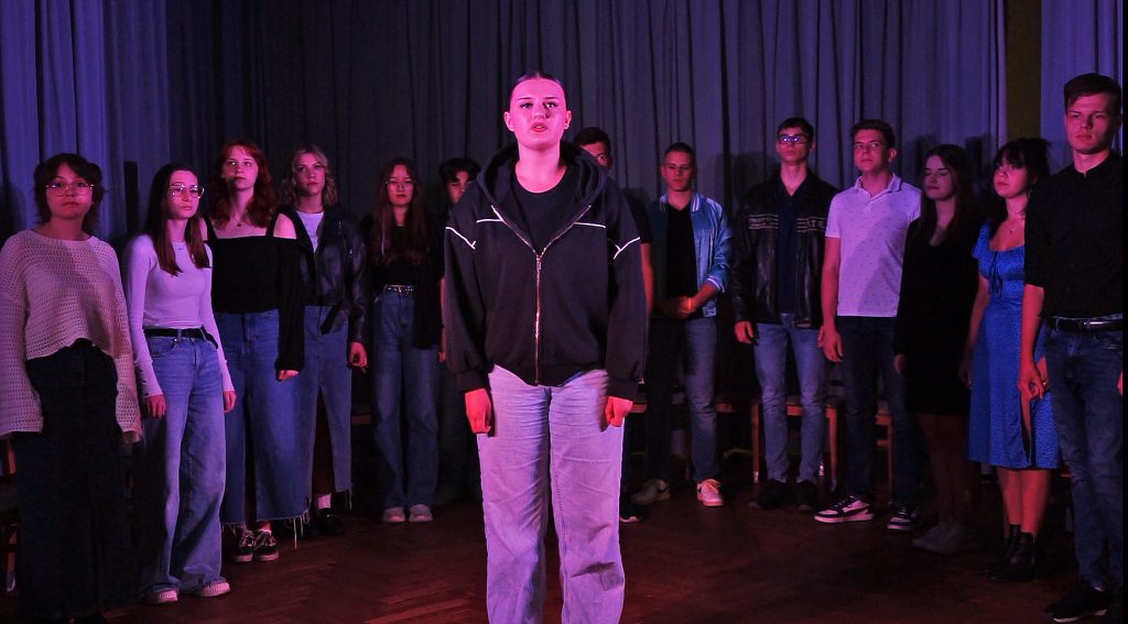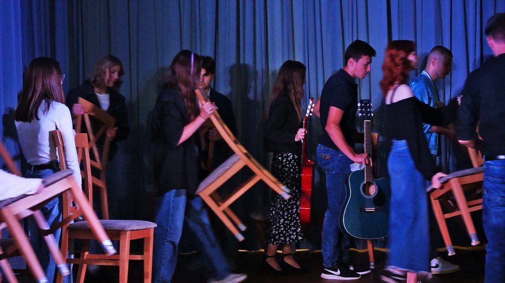 Relacja fotograficzna i filmowa ze sztuki teatralnej „Płyń po manowcach z włóczęgą” wystawionej przez Szkolne Koło Teatralne „Evviva L’ARTE”.