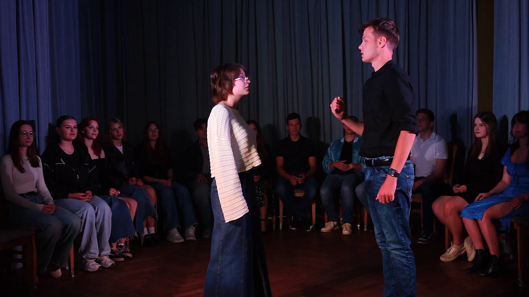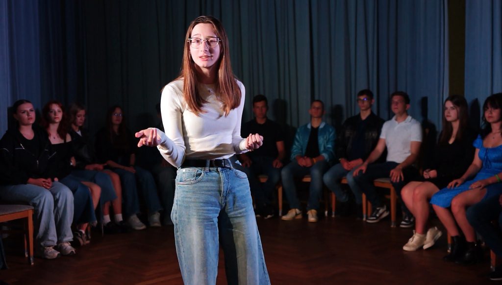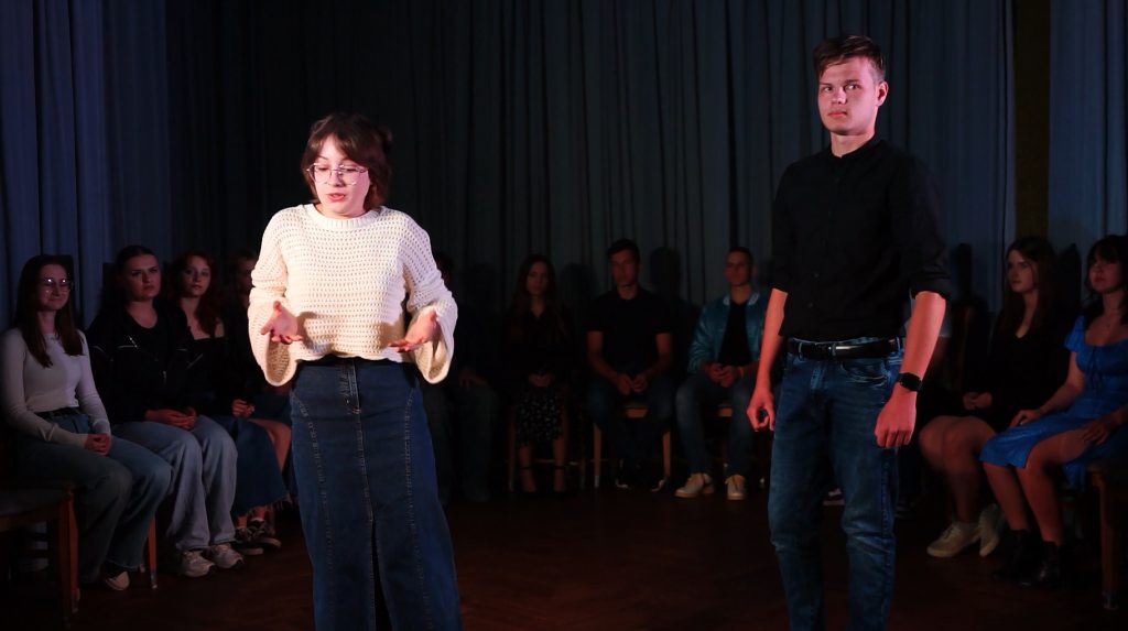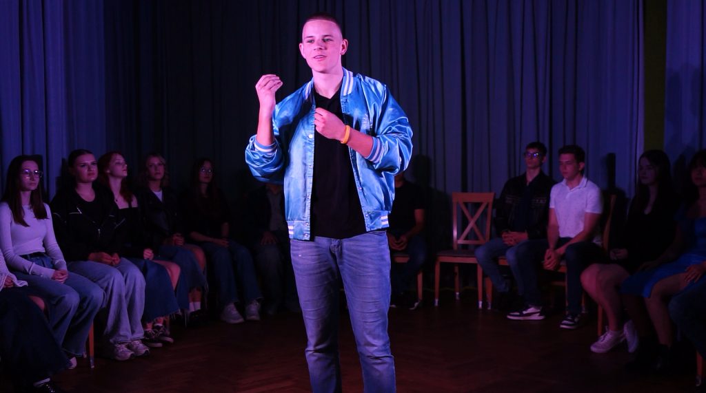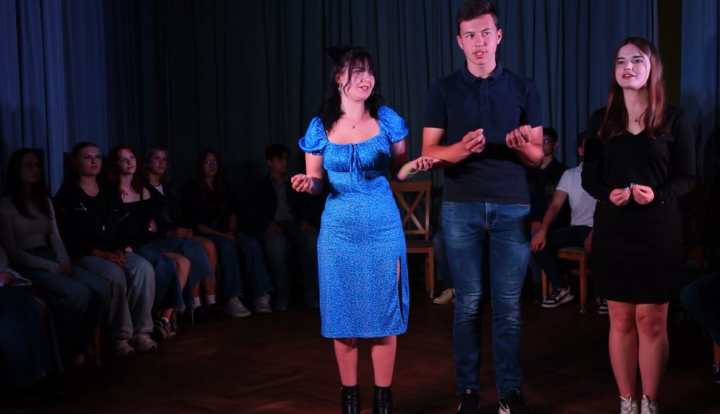 Relacja fotograficzna i filmowa ze sztuki teatralnej „Płyń po manowcach z włóczęgą” wystawionej przez Szkolne Koło Teatralne „Evviva L’ARTE”.
