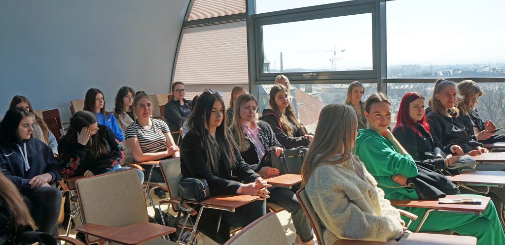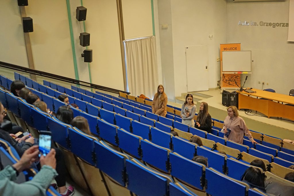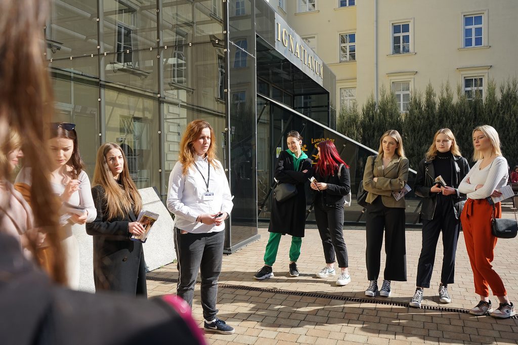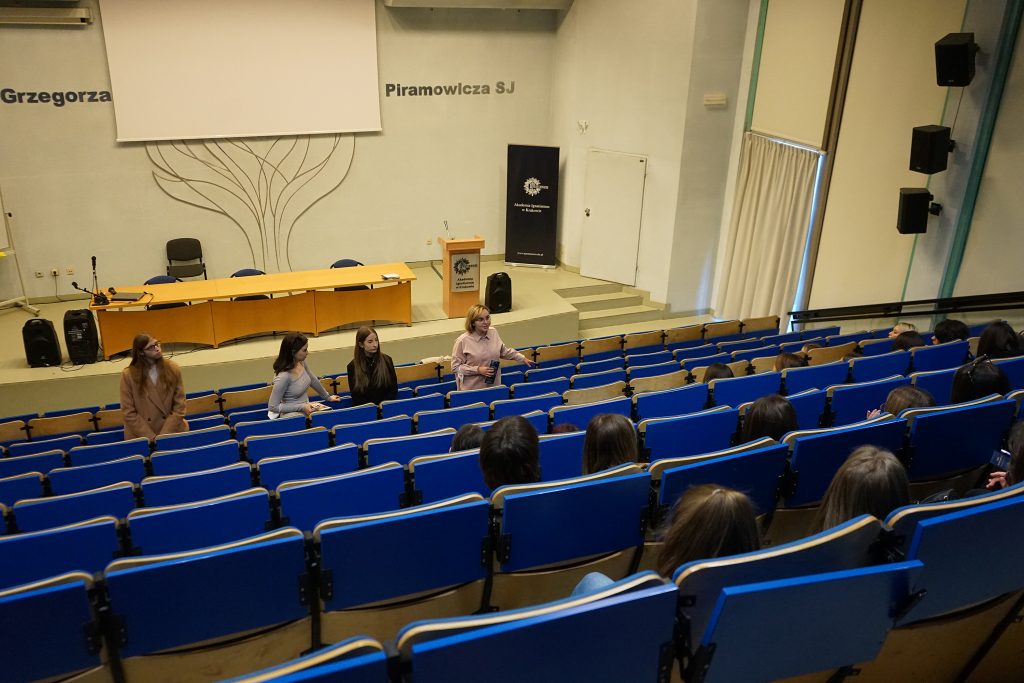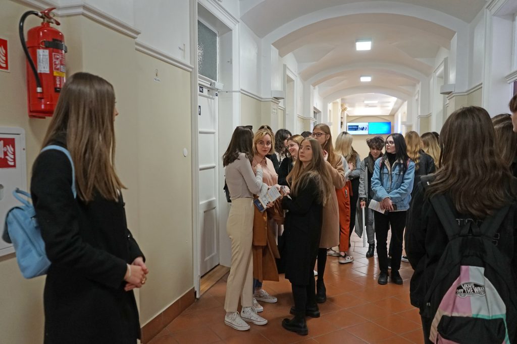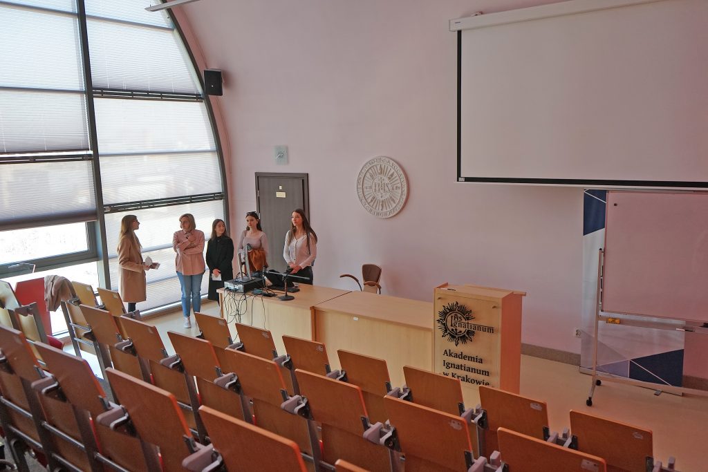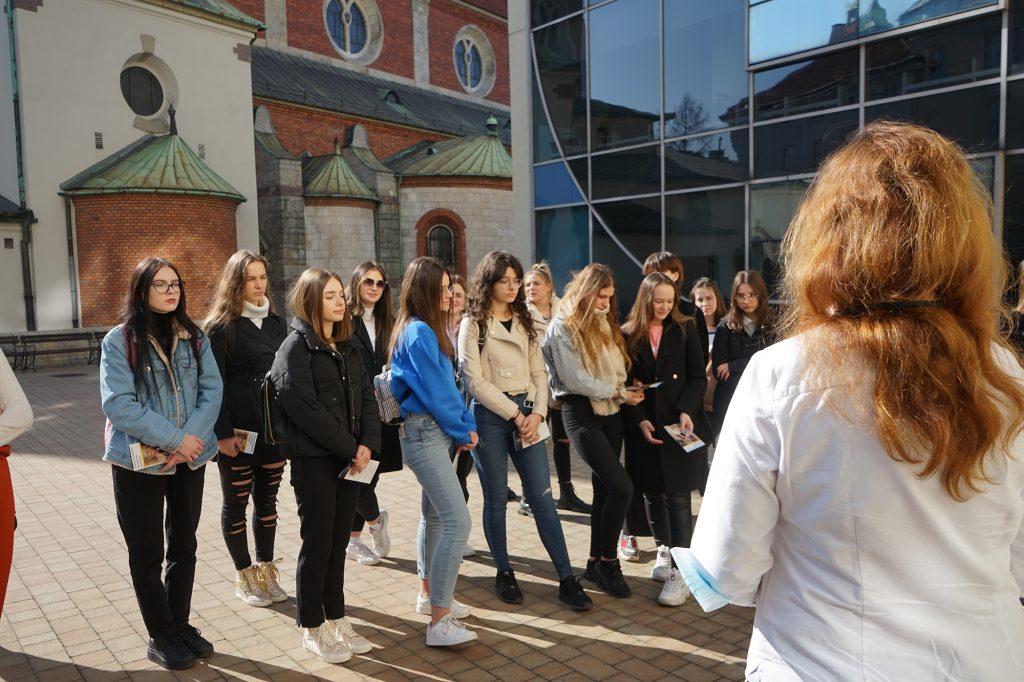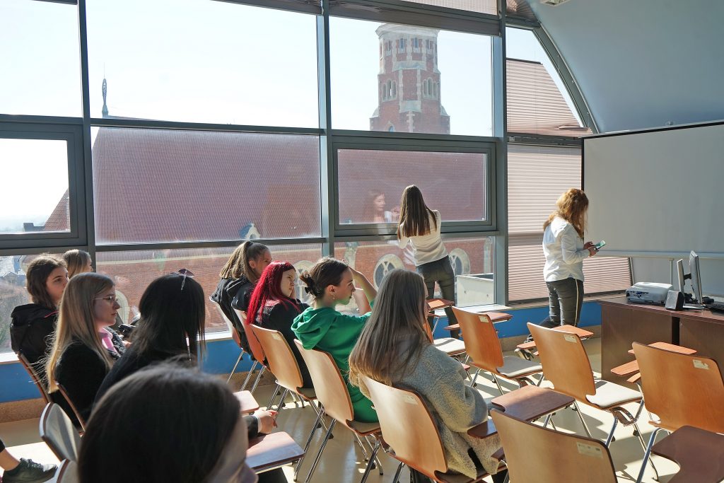 22 marca 2022 r. uczennice z klas 3ga i 3c z profilu PEDAGOGICZNO – PSYCHOLOGICZNEGO odwiedziły wyższą uczelnię Akademia Ignatianum w Krakowie. Wizyta na uczelni rozpoczęła się spotkaniem ze studentami psychologii i pedagogiki, którzy opowiedzieli o swoich kierunkach oraz o tym, dlaczego warto studiować psychologię i pedagogikę. Nasi uczniowie mieli okazję zadawania pytań oraz poznania uczelni od wewnątrz. Następnie odbył się specjalnie przygotowany dla nas wykład z psychologii, prowadzony przez dr Nowakowskiego. Wykład przybliżył naszym uczniom różne ścieżki zastosowania psychologii w pracy zawodowej. Dziękujemy za wspaniałą organizację i współpracę Paniom z Biura Promocji oraz Samorządowi Akademii Ignatianum w Krakowie. Korzystając z pięknej, wiosennej pogody wybraliśmy się jeszcze na Rynek Główny.