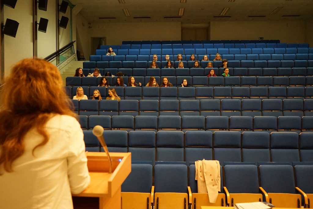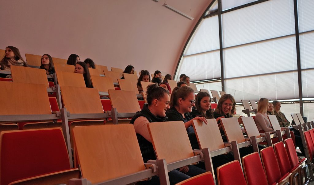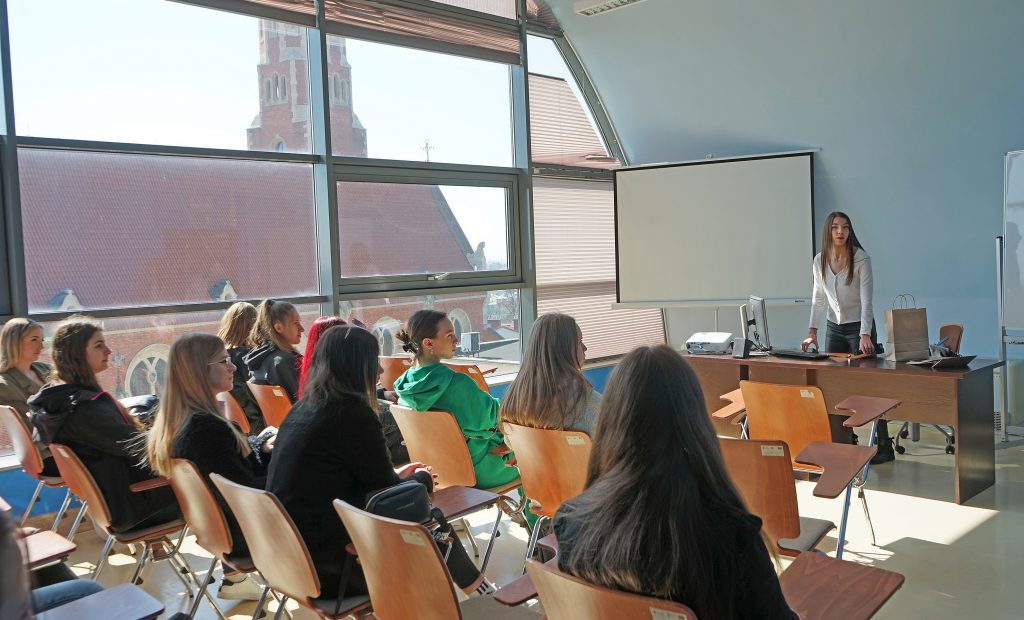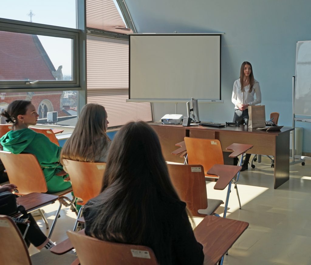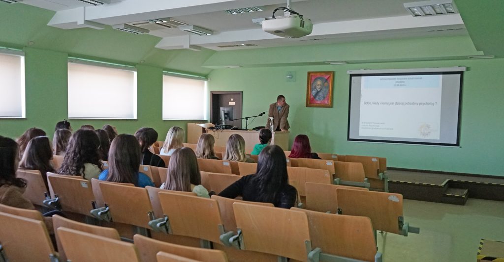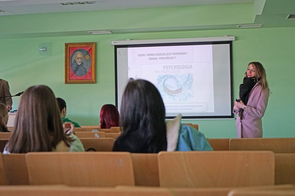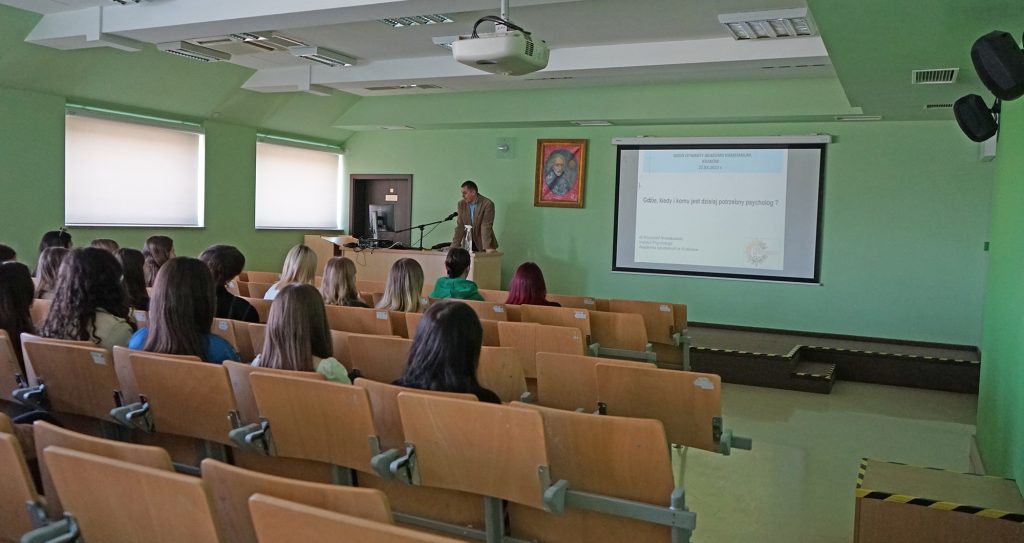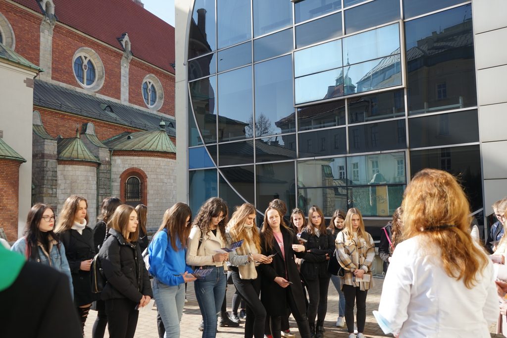 22 marca 2022 r. uczennice z klas 3ga i 3c z profilu PEDAGOGICZNO – PSYCHOLOGICZNEGO odwiedziły wyższą uczelnię Akademia Ignatianum w Krakowie. Wizyta na uczelni rozpoczęła się spotkaniem ze studentami psychologii i pedagogiki, którzy opowiedzieli o swoich kierunkach oraz o tym, dlaczego warto studiować psychologię i pedagogikę. Nasi uczniowie mieli okazję zadawania pytań oraz poznania uczelni od wewnątrz. Następnie odbył się specjalnie przygotowany dla nas wykład z psychologii, prowadzony przez dr Nowakowskiego. Wykład przybliżył naszym uczniom różne ścieżki zastosowania psychologii w pracy zawodowej. Dziękujemy za wspaniałą organizację i współpracę Paniom z Biura Promocji oraz Samorządowi Akademii Ignatianum w Krakowie. Korzystając z pięknej, wiosennej pogody wybraliśmy się jeszcze na Rynek Główny.