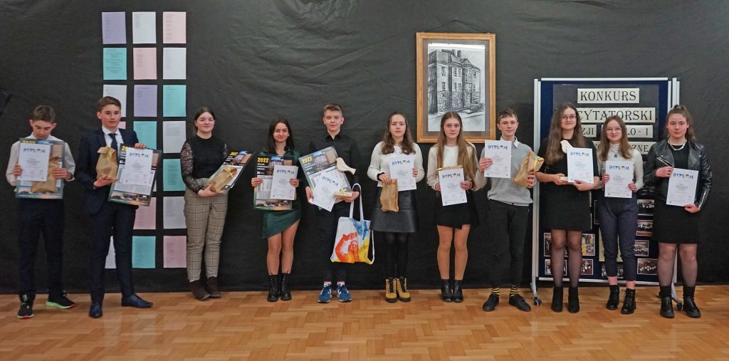 za „puchary” dla zdobywców I miejsc wyprodukowane przez „Fabrykantkę Aniołów”w Kojszówce. Dziękujemy za piękne recytacje, Nauczycielom za przygotowanie i zapraszamy na kolejną- XIV edycję konkursu w 2023 roku.