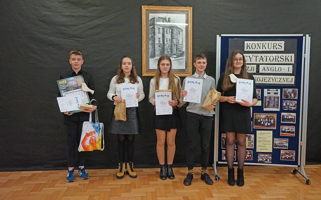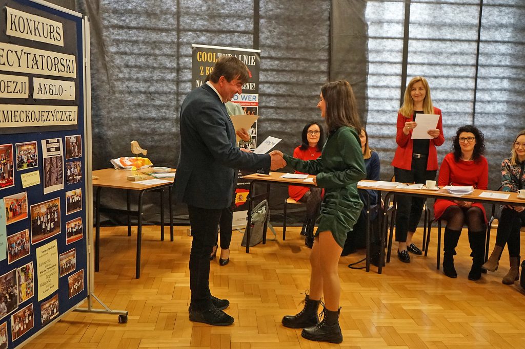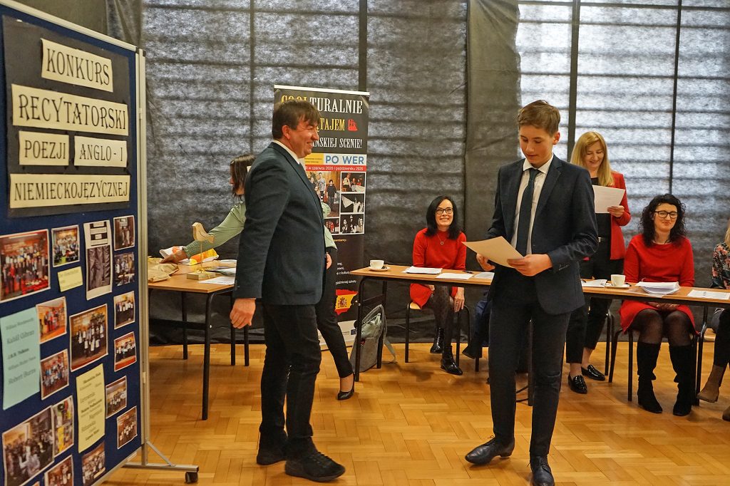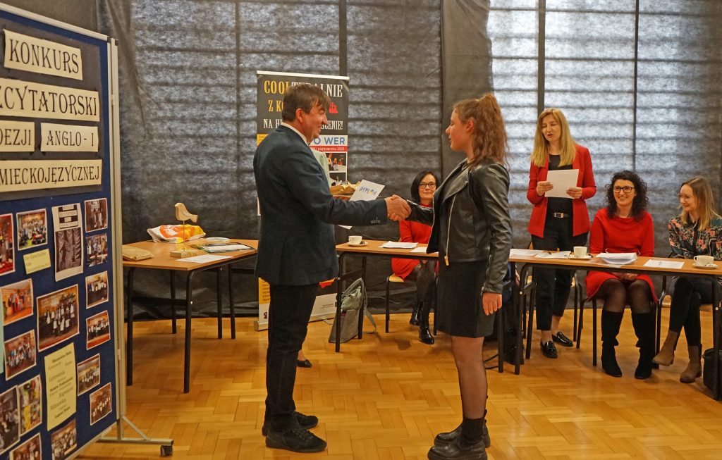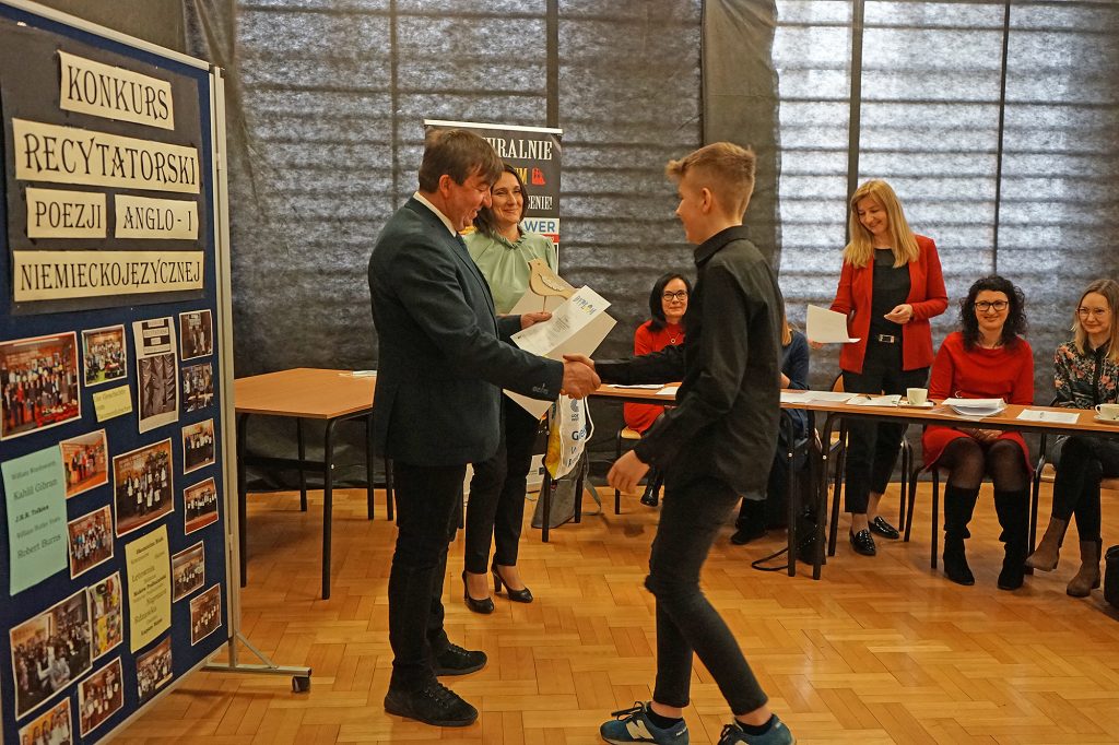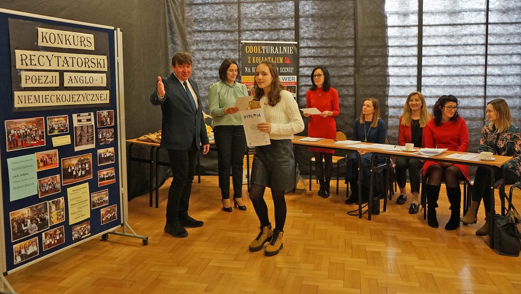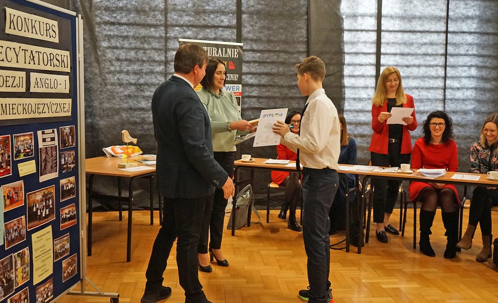 Za nami XIII Konkurs Recytatorski Poezji Niemiecko- i Anglojęzycznej dla Uczniów Szkół Podstawowych. Konkurs ma charakter otwarty. Jest organizowany przez Zespół Szkół im. H. Kołłątaja w Jordanowie i Starostwo Powiatowe w Suchej Beskidzkiej, które jest fundatorem nagród. Do konkursu zgłosiło się 58 uczniów( 22- j.niem. 56 – j. ang.) z 18 szkół podstawowych z: Jordanowa, Juszczyna, Makowa Podh. Toporzyska, Spytkowic, Naprawy, Krzczonowa, Grzechyni, Sidziny, Chabówki, Bystrej Podhalańskiej, Ponic, Rabki Zdroju (2 szkoły) Rdzawki, Skawy, Wysokiej, Łętowni.Jury w składziemgr Aneta Strączek, mgr Marzena Lańczyk , mgr Małgorzata Glanowska-Kania, mgr Magdalena Matejko-Bury, mgr Alina Zając przyznało następujące miejsca: Język niemiecki:I miejsce: Alicja Kowalczyk – Rabka-Zdrój II miejsce: Julia Wołodźko – NaprawaAnna Badyk- Chabówka,III miejsce: Mariusz Sułocha – Spytkowice Emilia Luberda – Rdzawka, Łukasz Żmuda – Rabka Zdrój
