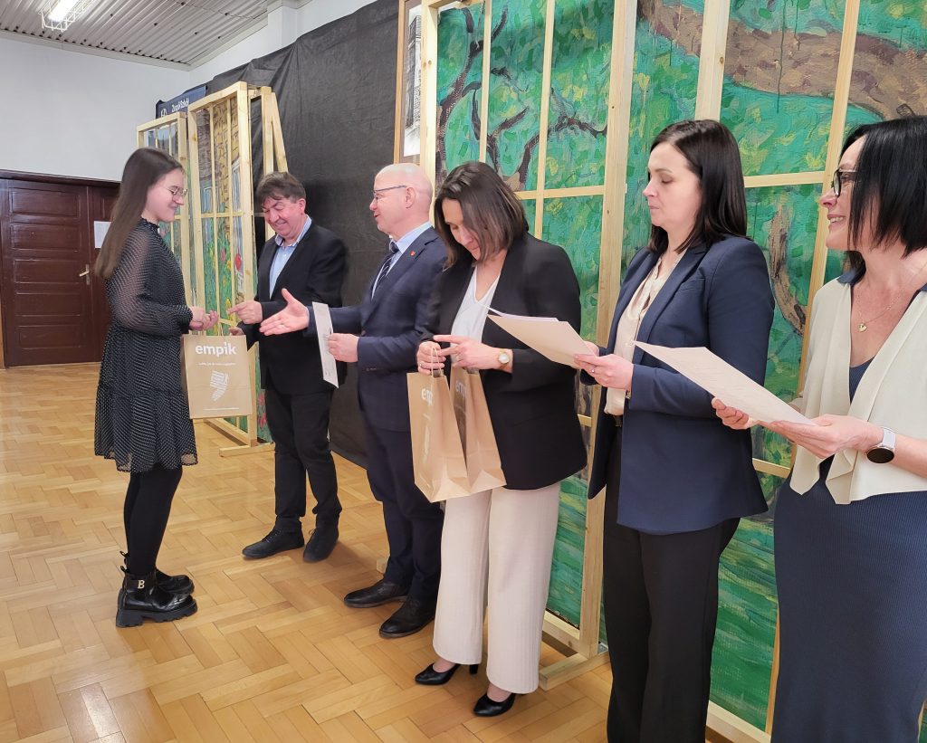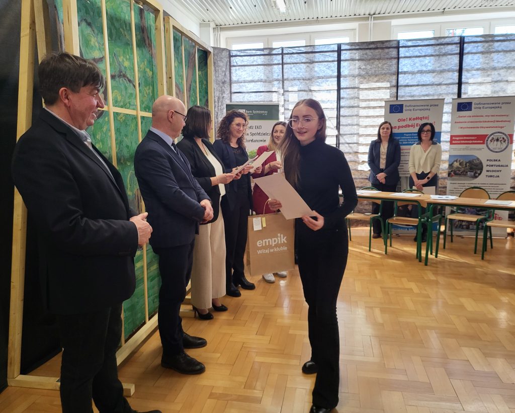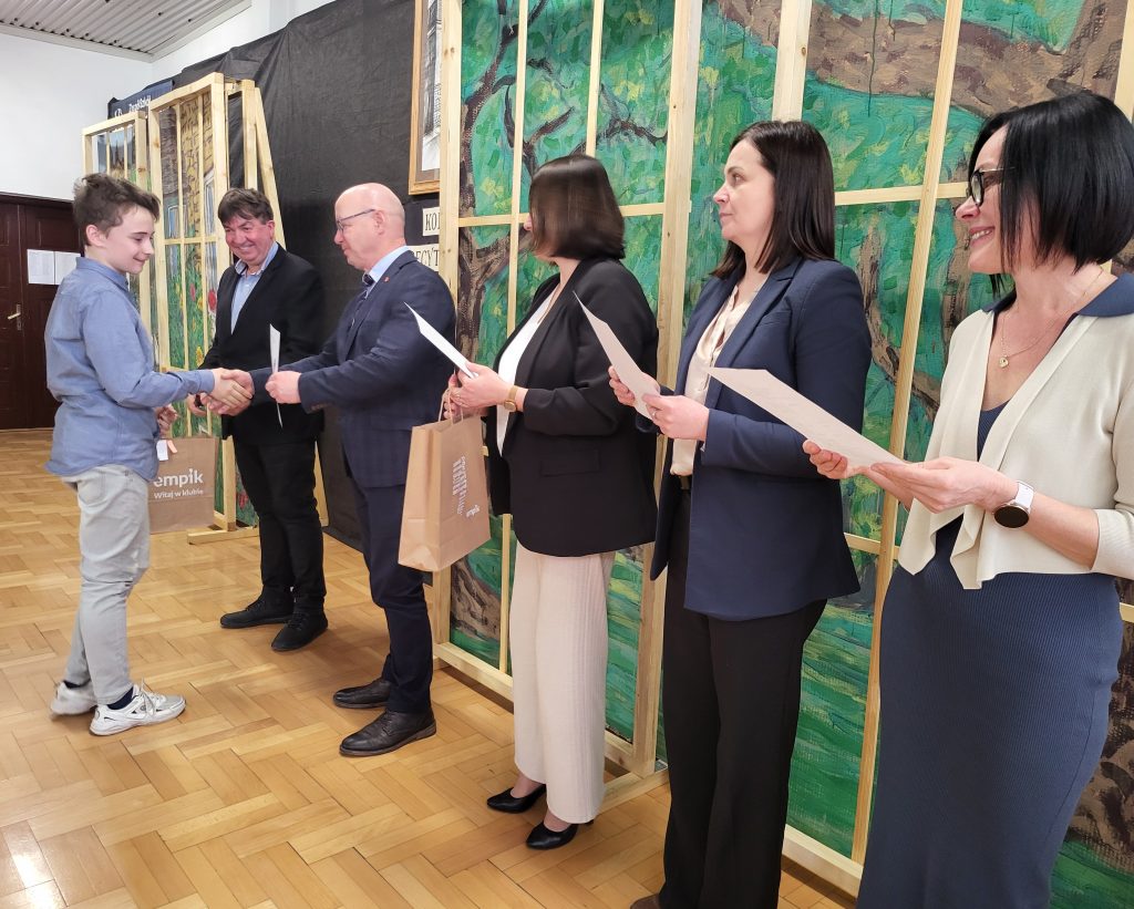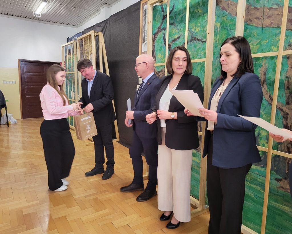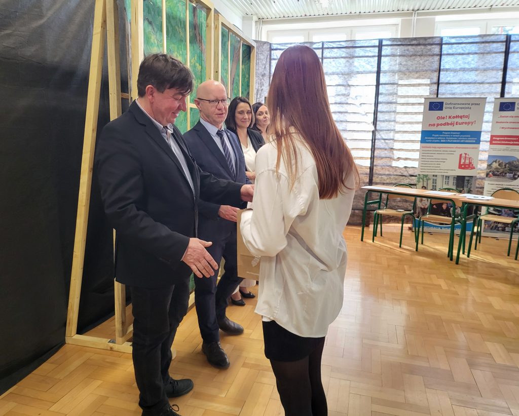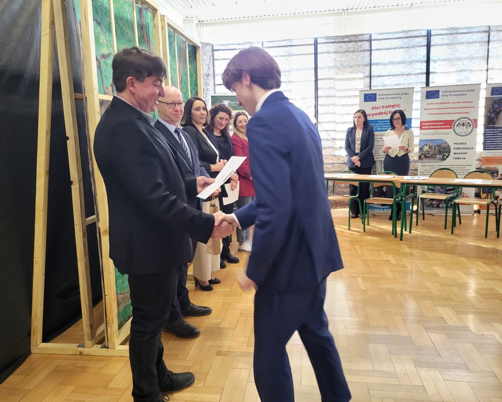 Nagrody i dyplomy wręczyli: Starosta Suski Pan Józef Bałos i Dyrektor Szkoły Pan Rafał Rapacz..