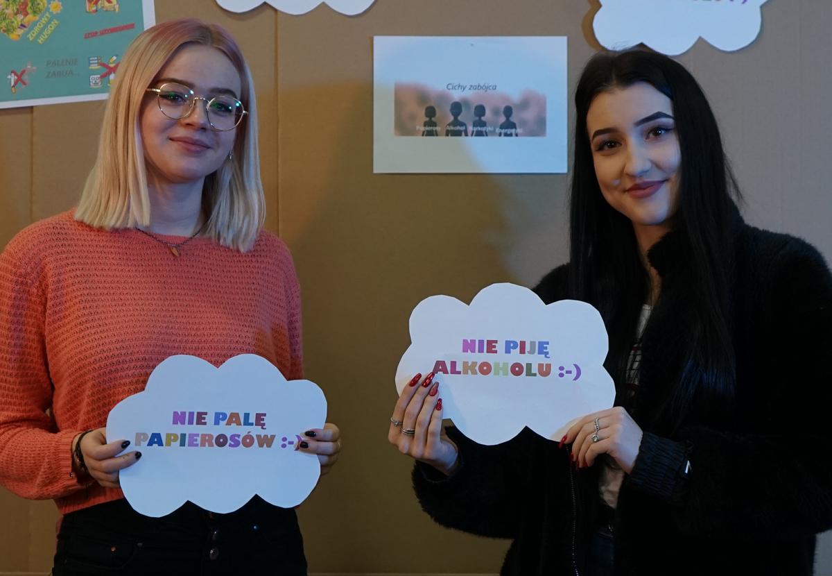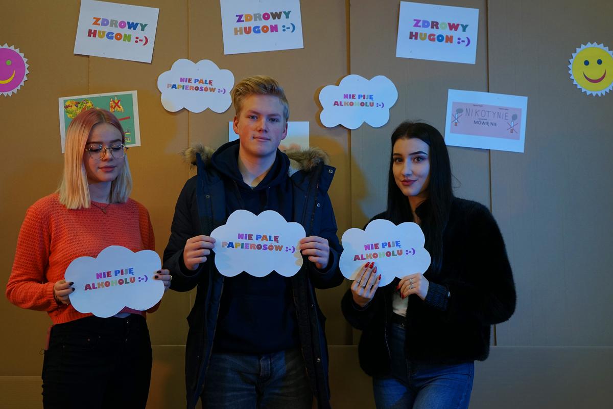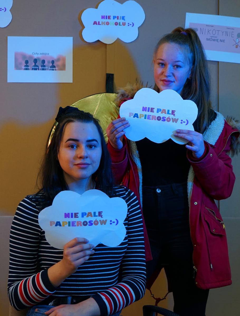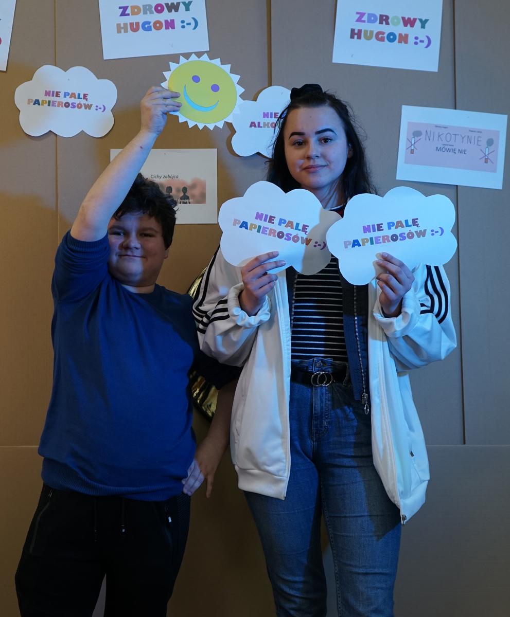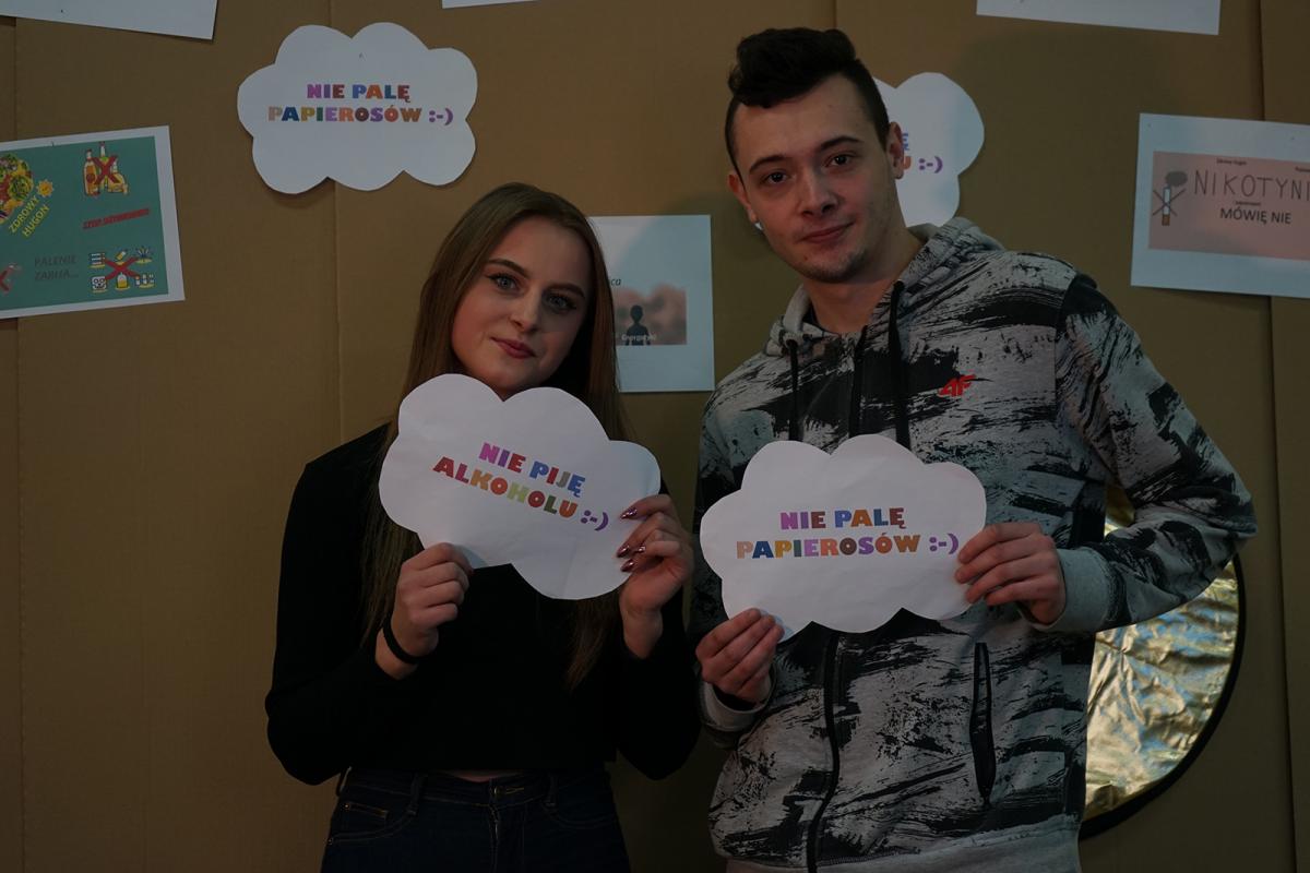 Dzisiaj na dużej przerwie uczniowie z klas 2 zachęcali swoich kolegów, do zdrowego trybu życia czyli bez papierosów, alkoholu i używek które szkodzą zdrowiu. W pracowni informatycznej uczniowie mieli możliwość zrobienia sobie fotek propagujących życie bez nałogów. Zapraszamy do obejrzenia galerii zdjęć z tego wydarzenia.
